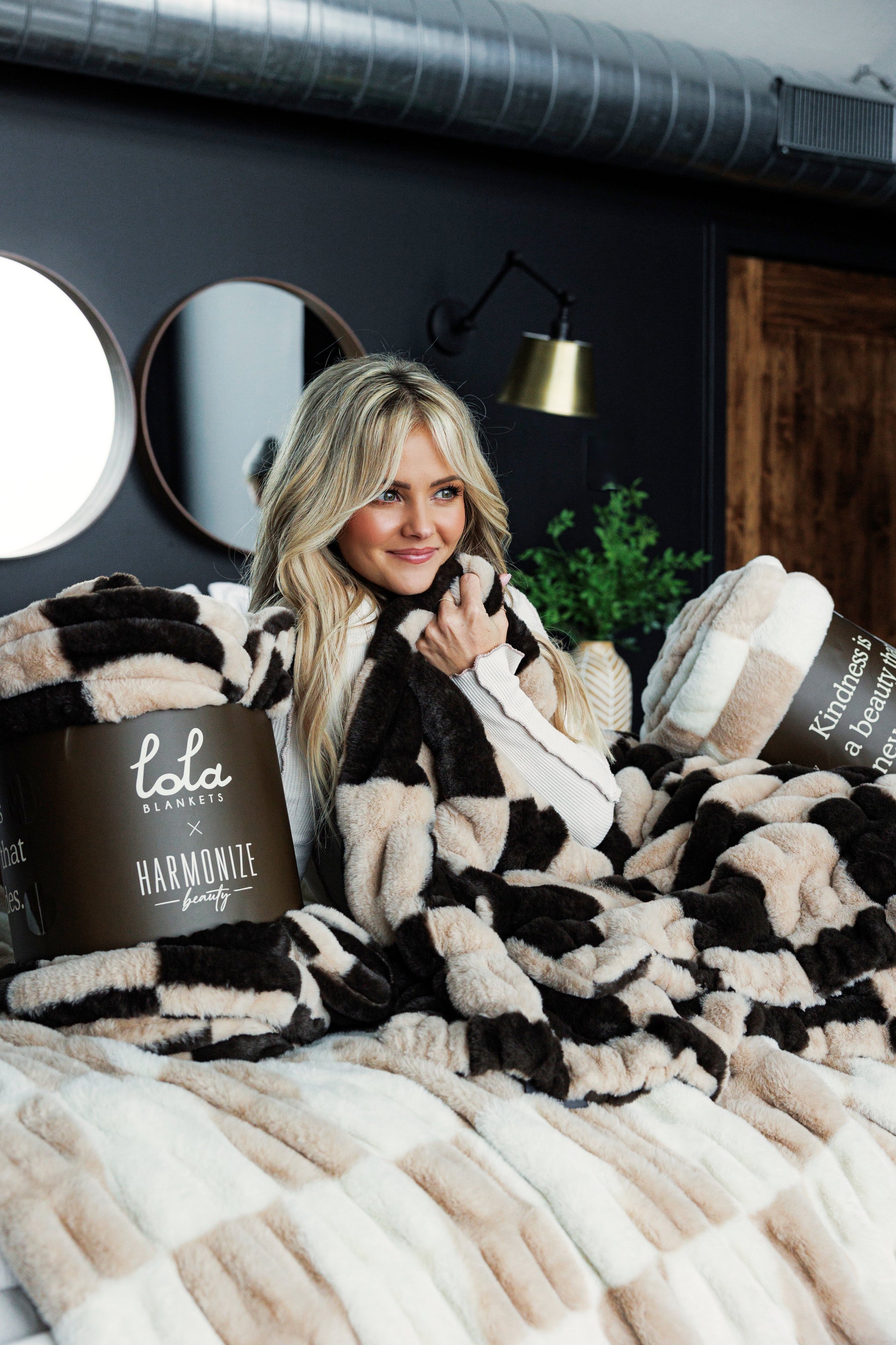 A coffee-toned brown and light tan — featured in the iconic checkered collection from Lola x Harmony Beus.