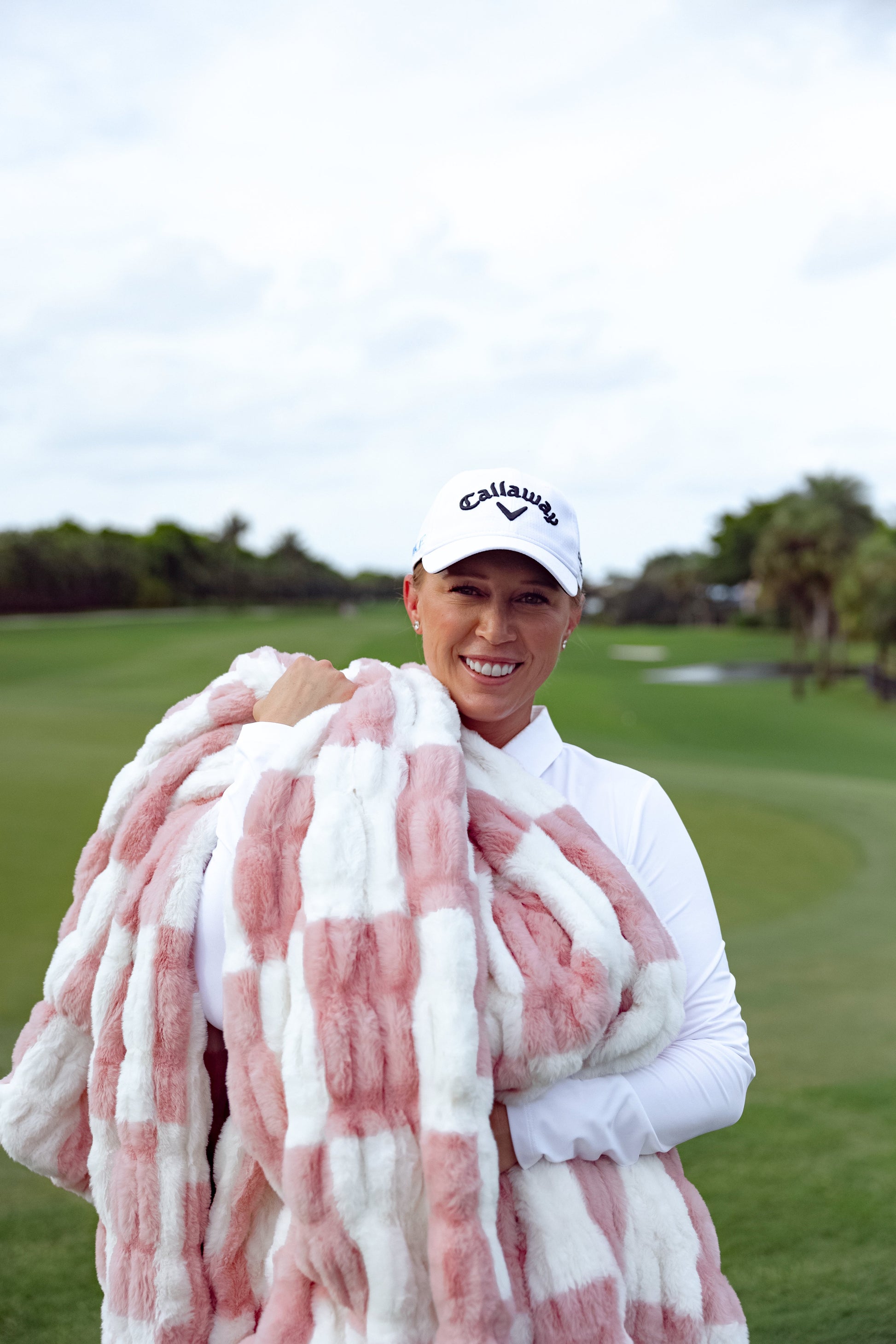 A blush pink and white check blanket, created in collaboration with the Morgan Pressel Foundation. 10% of the proceeds from this blanket will be donated to the Morgan Pressel Foundation in their mission to make a difference in the fight against breast cancer.