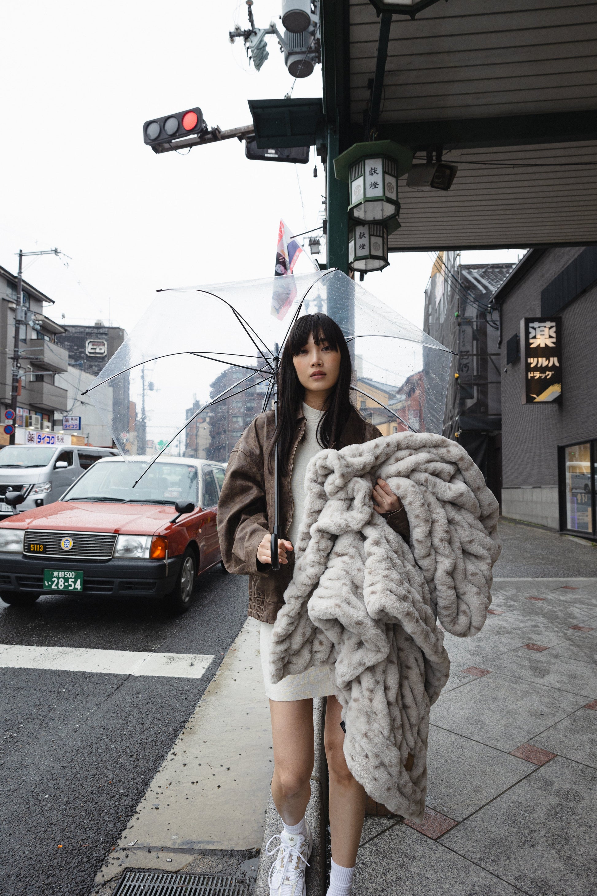 Inspired by the misty mountains of Japan, Rainy Day is a cloudy cream base with stormy gray speckles.