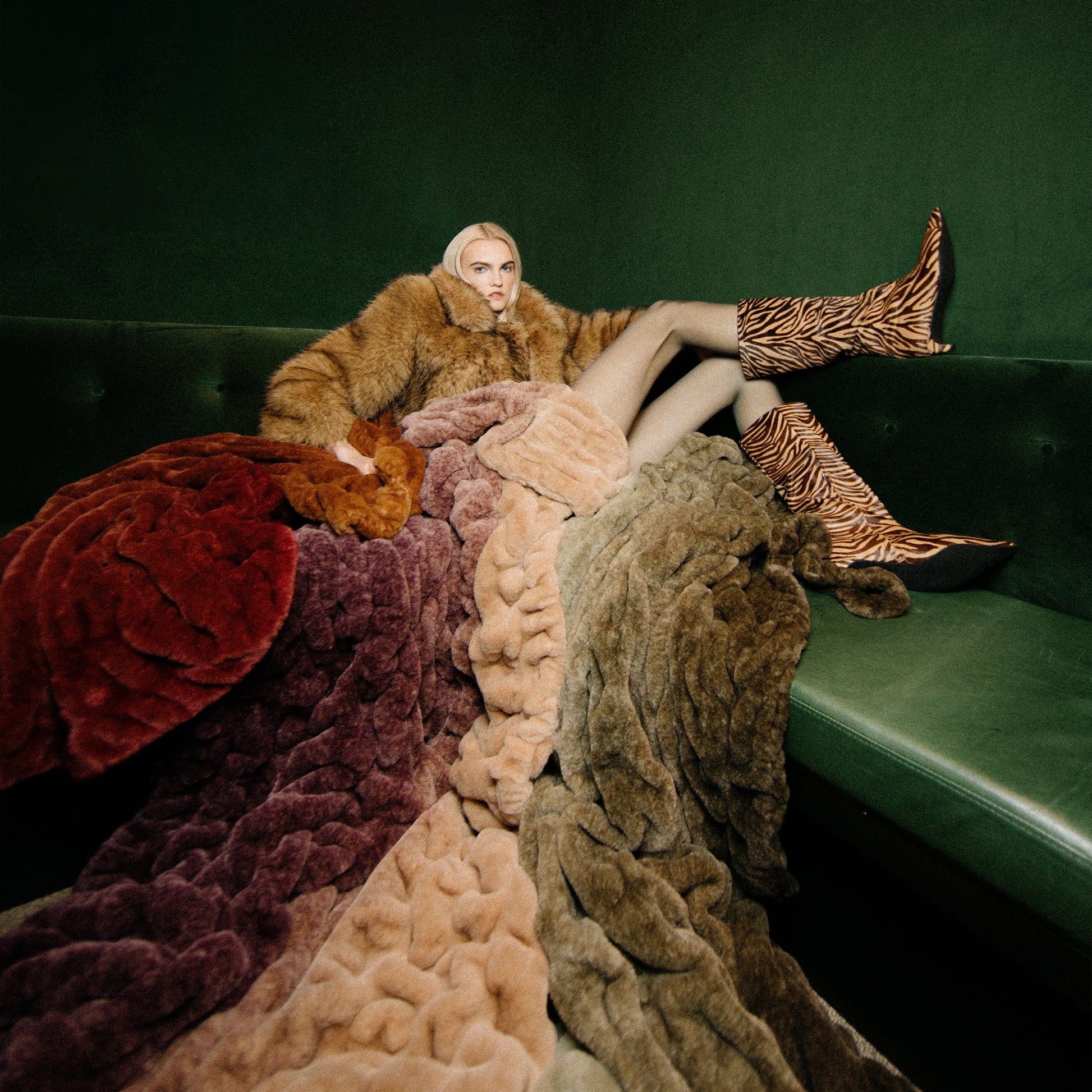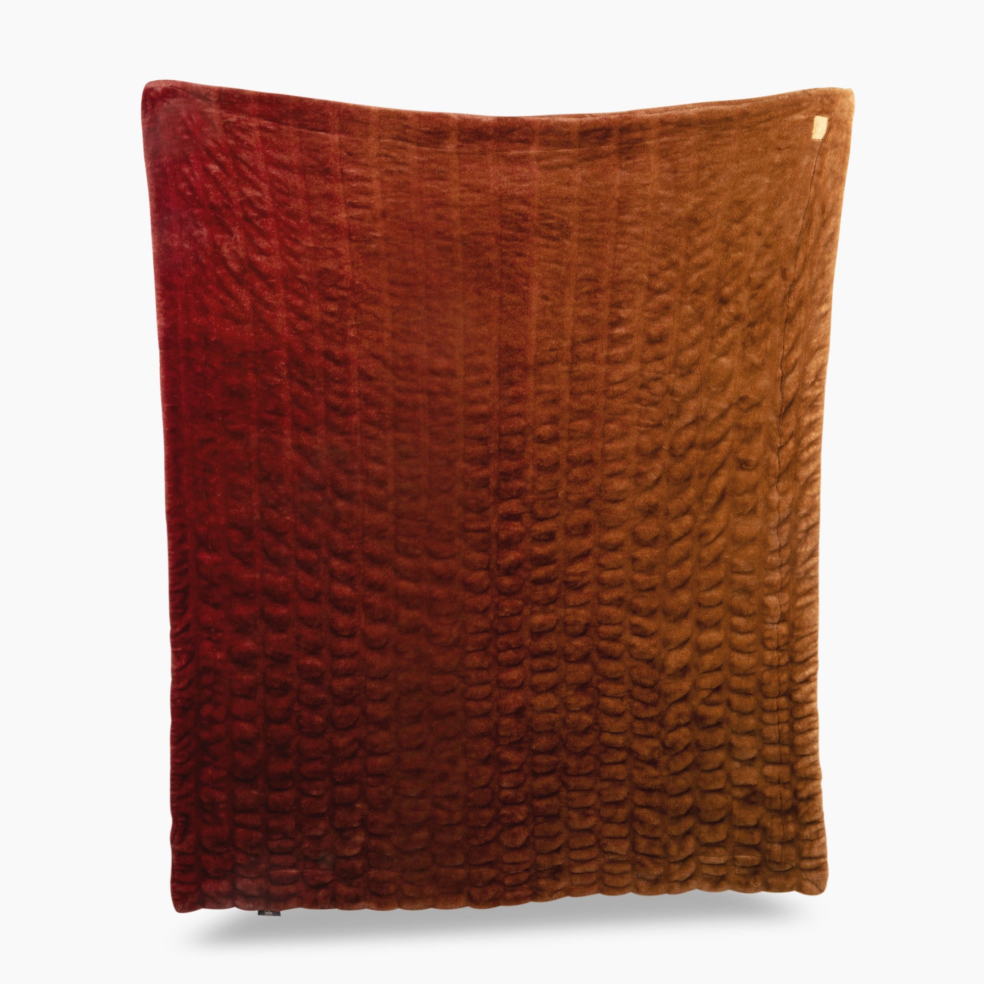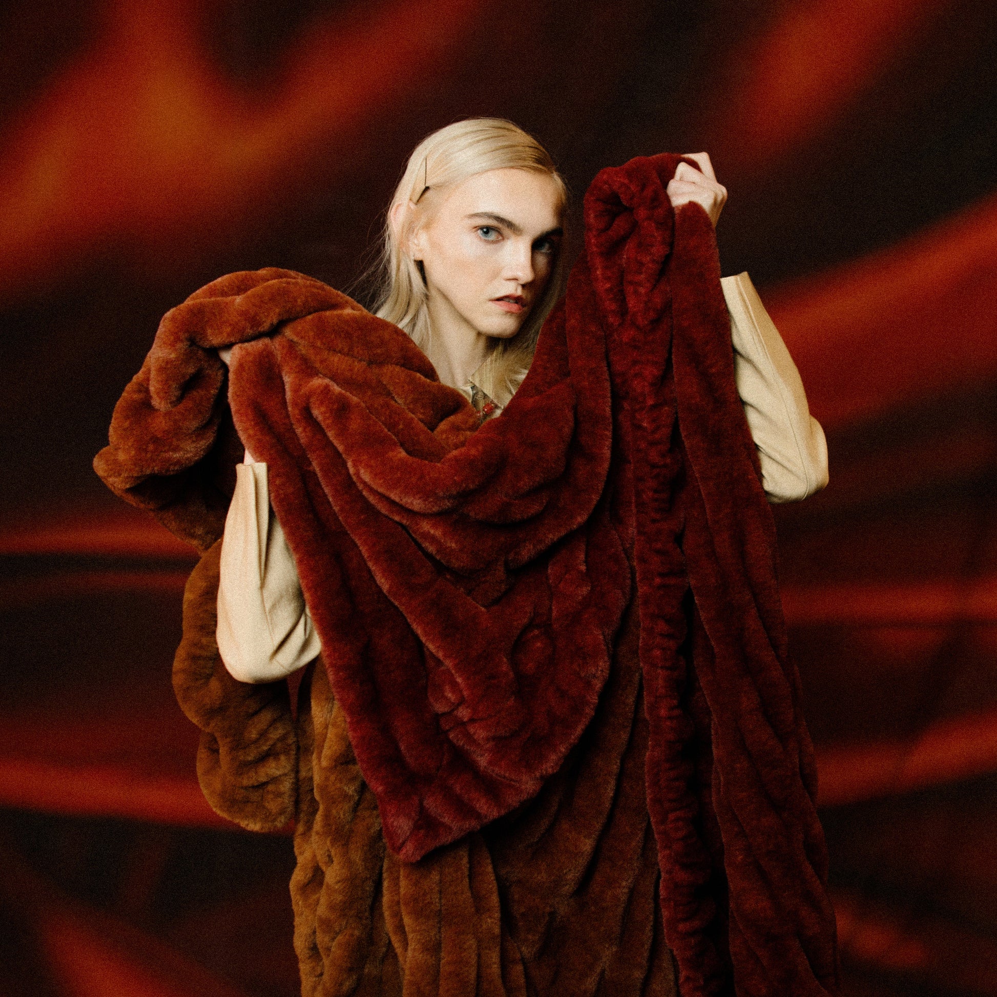 A muted, warm red that fades into Woodstock for a tonal ombre moment.